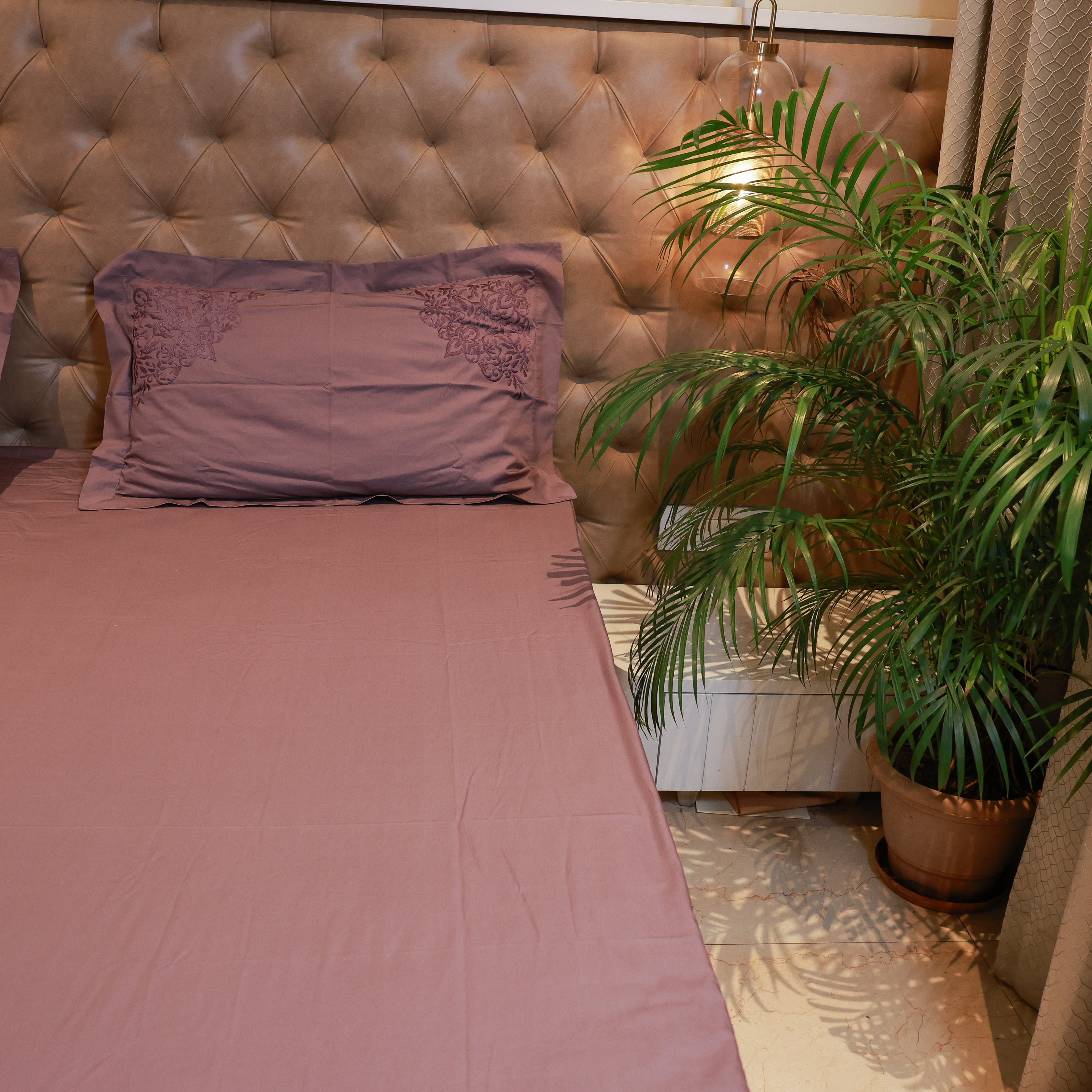 Reshkala Fine Yarn 100% Cotton 400 TC Kalakari Collection Double Stitch Embroidery Bedsheet King Size Coral color with 2 pillow covers